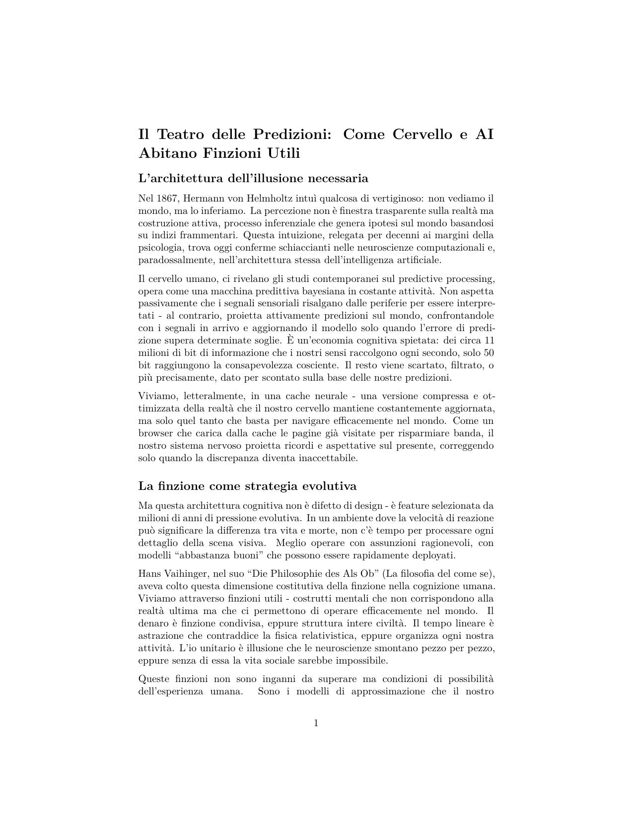 Il Teatro delle Predizioni: Come Cervello e AI Abitano Finzioni Utili