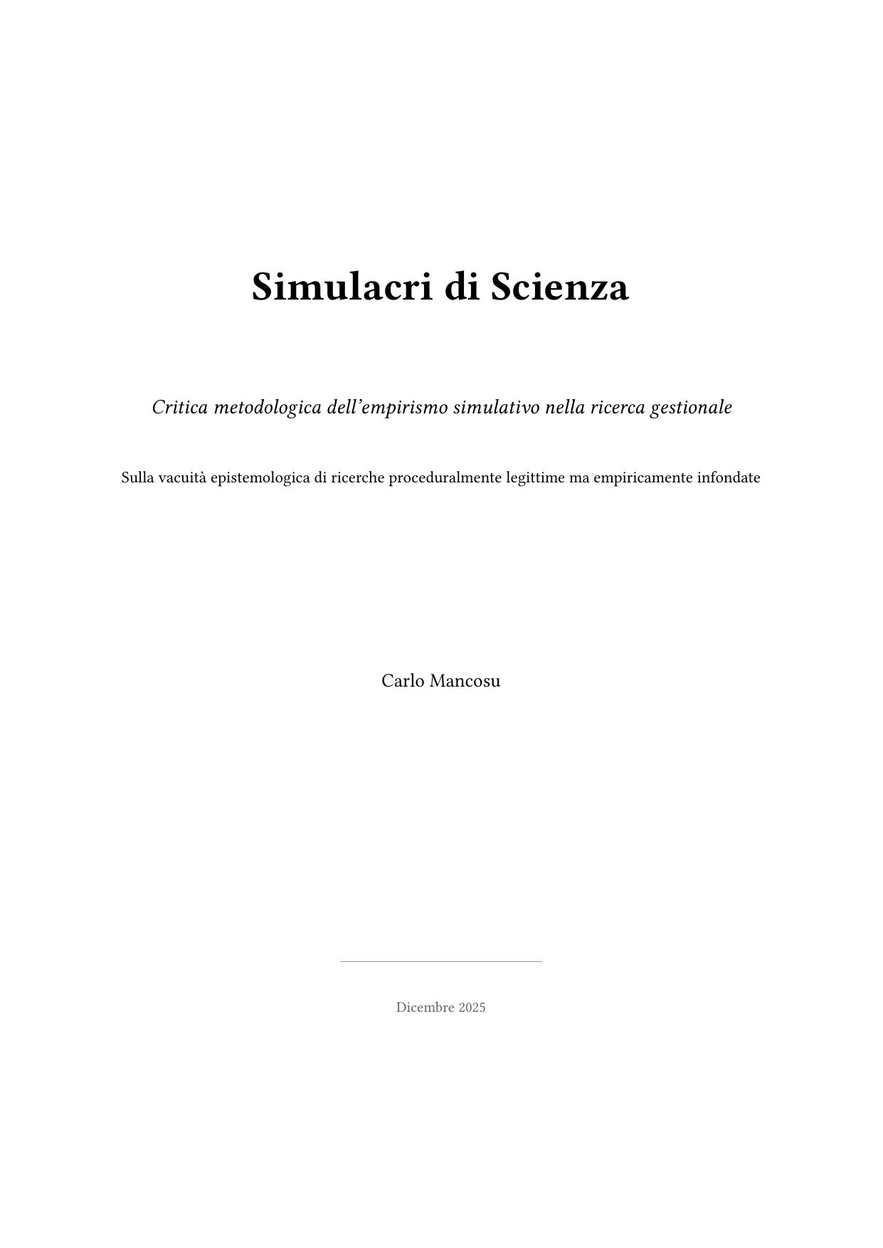 Simulacri di scienza: critica metodologica dell’empirismo simulativo nella ricerca gestionale